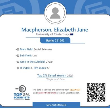I am a 2023 Rutherford Discovery Fellow, leading the project Blue carbon futures in Aotearoa New Zealand: Law, climate, resilience . I have led multiple, multidisciplinary environmental research teams to deliver research projects for the Sustainable Seas National Science Challenge on law and policy for ecosystem-based management and the Riverine Rights Norwegian Research Council project on legal innovations recognising the rights of rivers. I have been selected as a New Zealand entry to the Frontiers Planet Prize for my co-authored work on power and scale dynamics in global water governance.